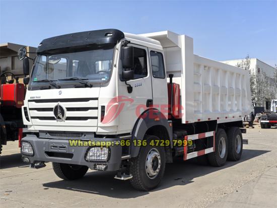 El camión volquete Beiben 2638 de servicio pesado está especialmente diseñado para el transporte de arena, tierra, mineral y material minero. Es un camión volquete de servicio pesado con tracción 6x4, motor de 380 hp y una capacidad de carga bruta vehicular (GVW) de 26 toneladas. Con cabina totalmente de acero NG80B, caja de cambios rápida de 9 velocidades, eje delantero de 7.5 toneladas con tecnología Benz y eje trasero doble de 13 toneladas con tecnología Benz, el camión volquete Beiben 2638 ofrece un rendimiento excepcional en países africanos.