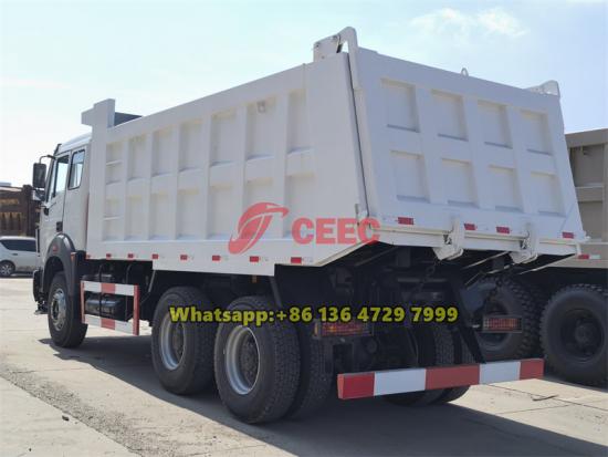 El camión volquete Beiben 2638, de servicio pesado, está diseñado para las duras condiciones de trabajo en África. Equipado con un motor Weichai de 380 CV y una transmisión manual de 9 velocidades, cuenta con un chasis reforzado Mercedes-Benz y un eje reductor de dos etapas de 13 toneladas, que ofrece una capacidad de carga de hasta 35 toneladas. Diseñado para entornos polvorientos y de alta temperatura, incorpora un sistema de filtración de aire multietapa, un tanque de combustible de acero y neumáticos todoterreno, lo que garantiza un rendimiento fiable en caminos sin pavimentar, como minas y obras de construcción. Es una solución de transporte de carga pesada robusta y duradera.