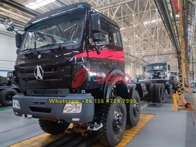 RHD drive, 12.00R24, 14.00R20El camión de carga Beiben 4142 con tracción 8x8 es un robusto vehículo de grado militar, diseñado para logística de servicio pesado y operaciones todoterreno. Impulsado por un motor WP120.420E32, Camión de carga todoterreno Beiben 8x8 Desarrolla 420 caballos de fuerza a 2200 rpm, combinando un alto par motor con un consumo de combustible eficiente. El eje delantero utiliza una unidad Mercedes-Benz de 7,5 toneladas con diferencial reforzado, diseñada para soportar cargas verticales elevadas durante maniobras a alta velocidad. La configuración trasera emplea dos ejes Mercedes-Benz de 13 toneladas, dispuestos en tándem, que distribuyen el peso de la carga uniformemente y mejoran la tracción gracias al sistema de tracción 8x8 de grado militar.