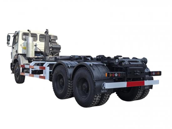 Ofrece una capacidad de elevación de 20 toneladas y es compatible con contenedores de basura de 20 metros cúbicos. El tiempo del ciclo de carga y descarga es ≤110 segundos, y el vehículo se puede combinar con varios contenedores para operaciones cíclicas. La superestructura está hecha de placas de acero de aleación de alta resistencia T710, con patas de soporte traseras hidráulicas y dispositivos anti-manipulación. El brazo del gancho está construido con placas de acero resistentes al desgaste de alta calidad, y los ganchos de seguridad son robustos y confiables. Estas características no solo garantizan la seguridad operativa, sino que también ayudan a reducir los costos operativos, lo que hace que el camión sea ideal para las tareas de recolección de basura en entornos exteriores exigentes.