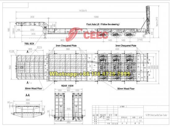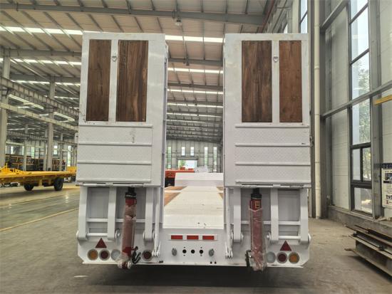 El semirremolque de plataforma baja de 3 ejes y 45 toneladas está diseñado específicamente para el transporte de equipo pesado. Su estructura de plataforma de perfil bajo y sus rampas hidráulicas facilitan la carga y descarga. El chasis, fabricado en acero de alta resistencia, garantiza una capacidad de carga de 45 toneladas. Equipado con tres ejes autodireccionales de 13 toneladas y un sistema de suspensión neumática, proporciona una excelente estabilidad y seguridad en la conducción, lo que lo convierte en la opción ideal para el transporte de maquinaria de ingeniería.